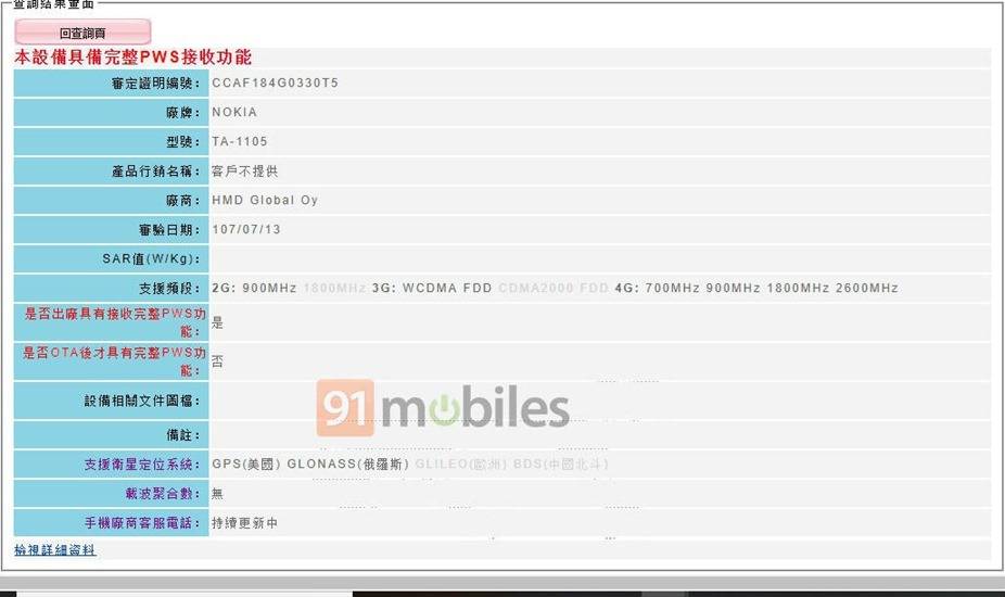Unknown Nokia TA-1105 spotted on Taiwan’s NCC certification agency’s website