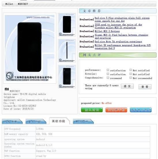 Xiaomi Mi 8 new variants with 4GB and 8GB RAM spotted on TENAA
