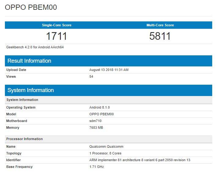 OPPO R17 Pro with Snapdragon 710 SoC and 8GB of RAM allegedly spotted on Geekbench