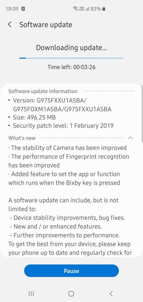 The changelog of the software update states three key factors. In terms of new features, there are not a lot of exciting things to talk about, since Samsung has rolled out pretty much all of its features at the time of launch. The only thing that was to be updated is the Bixby button, which Samsung has now done with this new update, giving the button flexibility of operation. Users of the Samsung Galaxy S10+ can now set a custom app or function that will be launched on the screen, instead of the Bixby AI assistant.