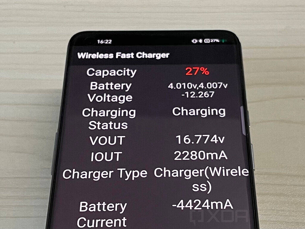 We also get a good look at the Realme Flash– the first-ever Realme-branded smartphone that supports wireless charging and, hence, the Realme MagDart. The image (pictured below) also shows us some of the Realme MagDart’s charging specs. It draws 4.4 amperes of current at 4 volts, resulting in a total wattage of 17.6W. However, we need to multiply that figure by two to get the total wattage, as the Realme Flash uses a dual-cell battery, giving us a total wattage of 35.2W. This isn’t nearly as high as the advertised 66W figure, but impressive nonetheless.