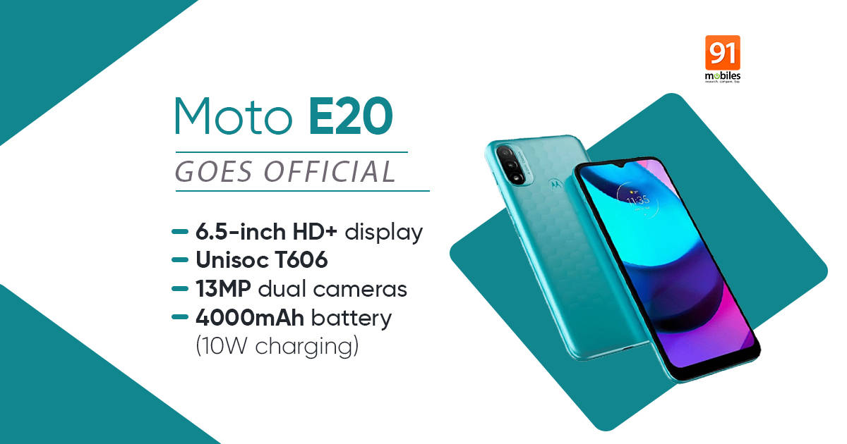 The post Moto E20 launched with 6.5-inch display, 13MP dual camera, Android 11 Go Edition: price, specifications first appeared on 91mobiles.com.