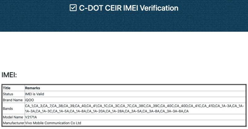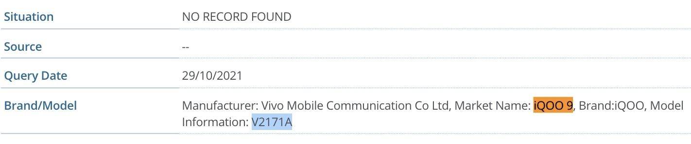 iQOO 9 listing on IMEI database