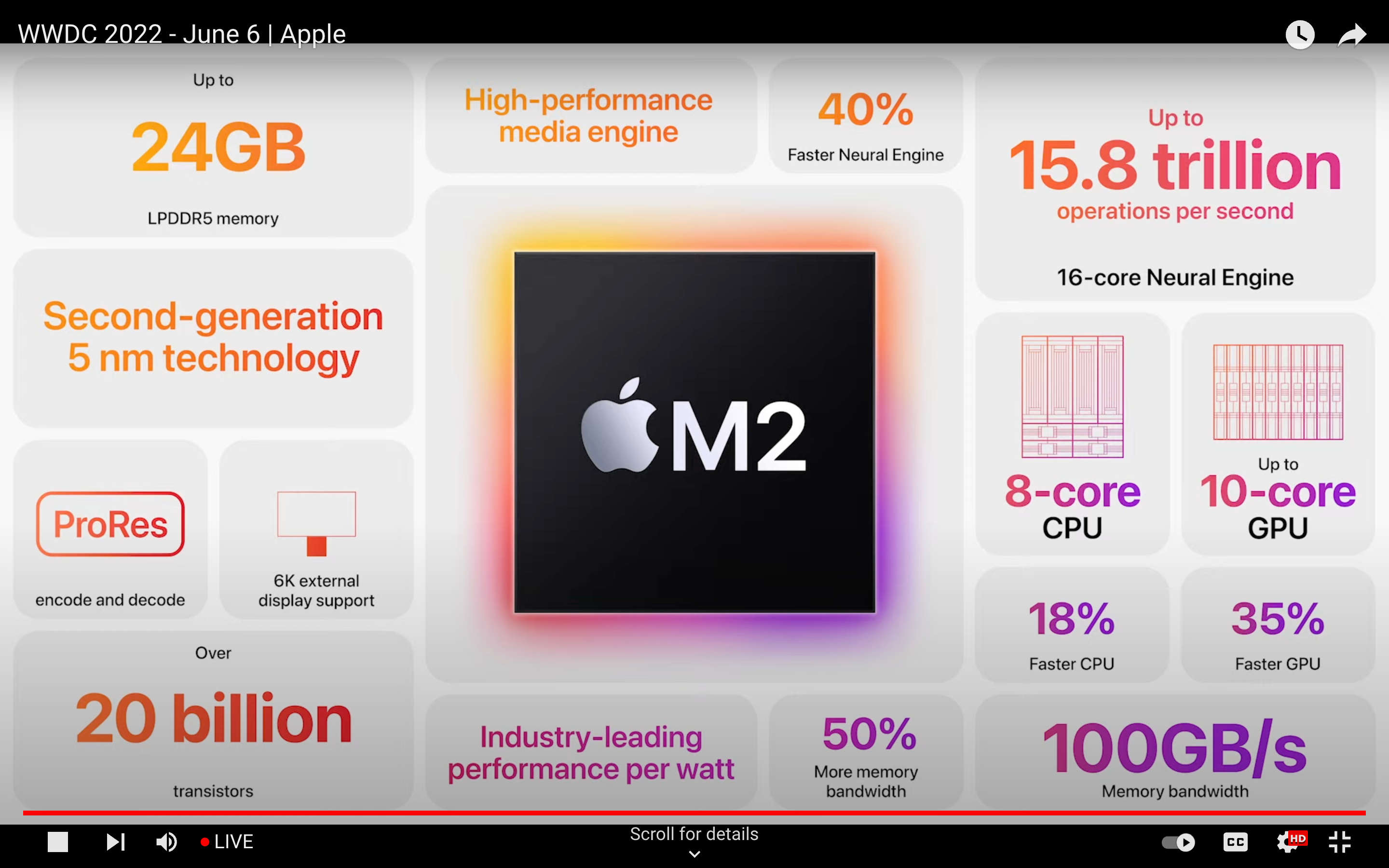 Talking about the M2 chipset, the new Apple silicon offers up to 24GB of unified memory, a next-gen 8-core CPU that comprises 4 performance cores and 4 high-efficiency cores. The GPU now has 10 cores, which is two more than M1. The M2 chipset delivers an 18 percent increase in performance over the M1 chipset.