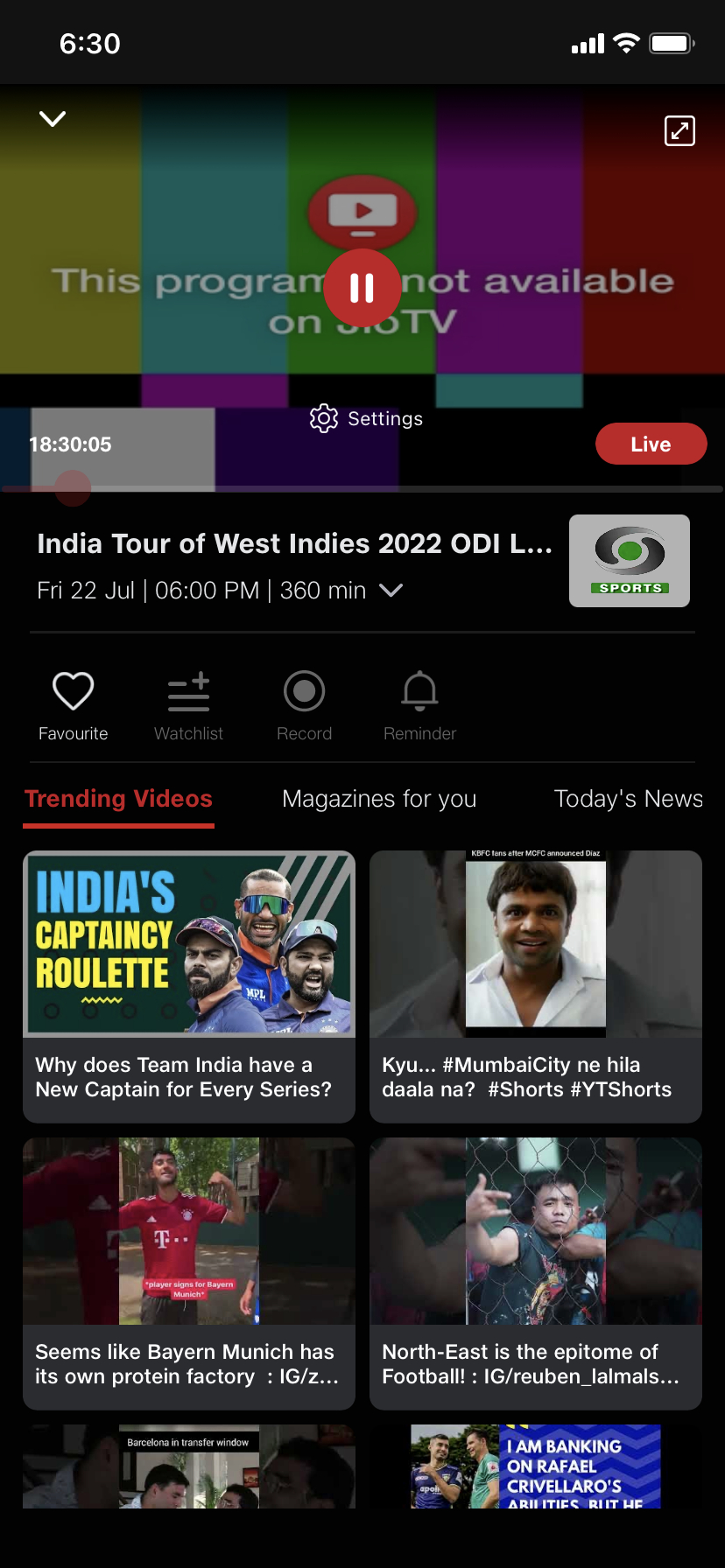 Update: While DD Sports is available to watch on JioTV, you can’t watch India vs West Indies live streaming. You will get a message ‘This program is not available on JioTV’ if you try to stream the match online via the Jio app.
