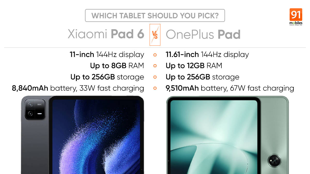 The post Comparing Xiaomi Pad 6 with OnePlus Pad: which mid-range tablet should you buy? first appeared on 91mobiles.com.