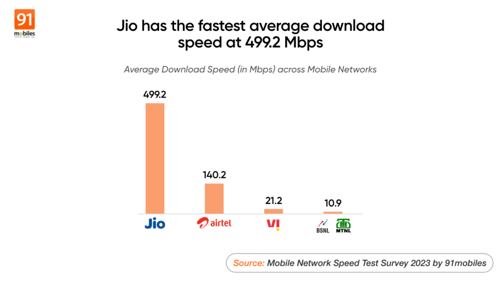 - It also leads in terms of average mobile download speed in India, at 571Mbps