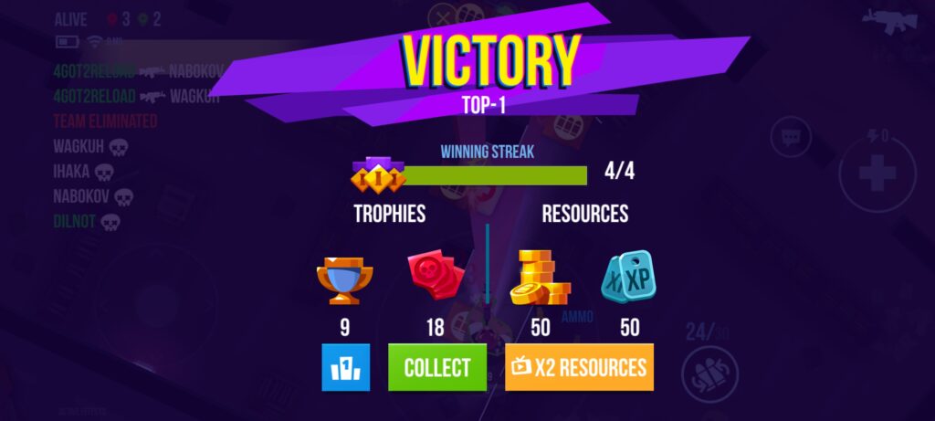Battle Royale offers match rules that should be familiar to most people. Multiple teams battle it out on a shrinking map to be the last team standing. Matches are incredibly short for the genre and the average match will barely last over 2 minutes.