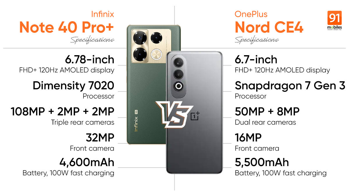 The post Comparing Infinix Note 40 Pro+ and OnePlus Nord CE4: which phone looks better under Rs 25,000? first appeared on 91mobiles.com.