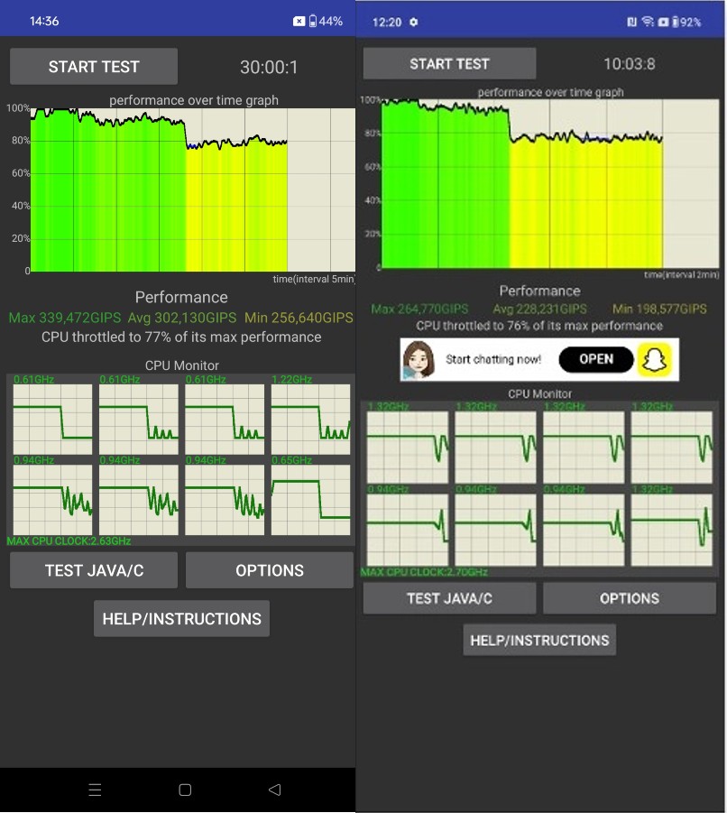 The OnePlus Nord CE4 and Nord CE3 CPU Throttle performance is on par with each other. Both smartphones throttle equally under intense load running 50 threads for half an hour. For reference, the OnePlus Nord CE4 throttles 77 percent of its peak performance as per the CPU Throttle benchmark, whereas its predecessor maintained a performance level of 76 percent on the same test.