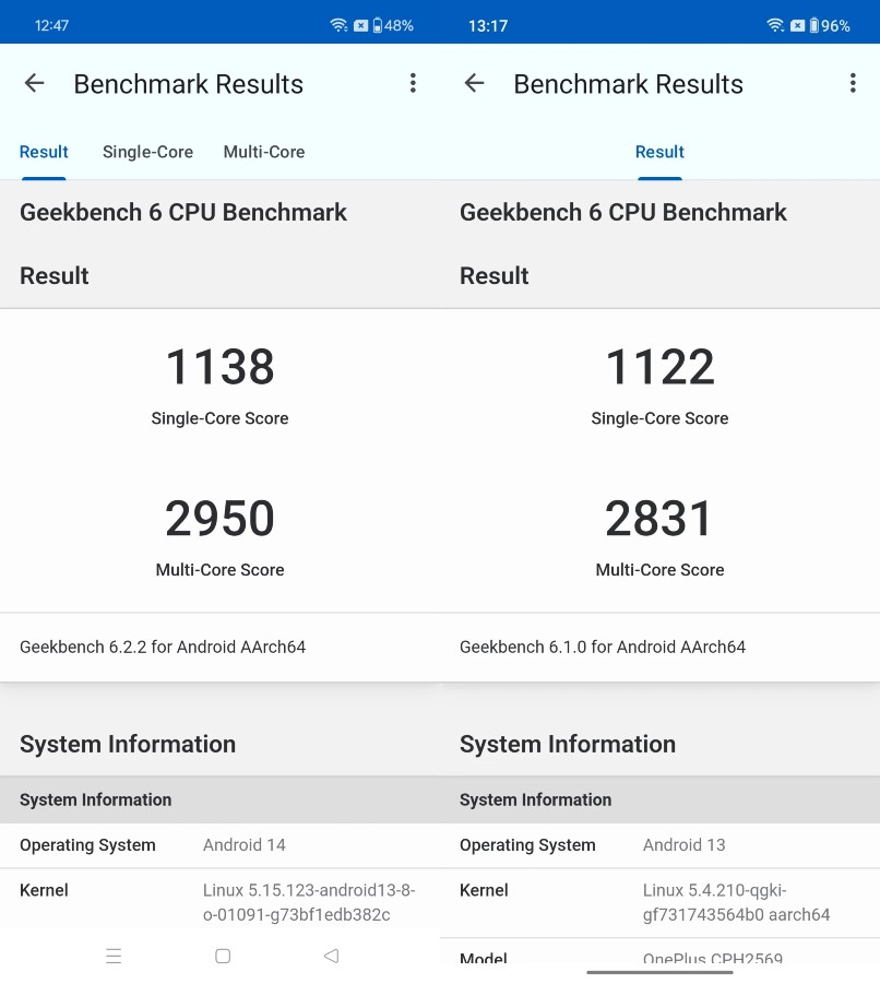 The OnePlus Nord CE4 also triumphs over the Nord CE3 on Geekbench; however, the difference is only marginal. The latter logged 1,118 and 2,767 scores in the single-core and multi-core tests respectively. The OnePlus Nord CE4, on the other hand, achieved 1,118 in the single-core test and 2,950 in the multi-core test. While the Nord CE4 should be more capable of handling tasks, the difference may not be easily perceivable in real-world usage.