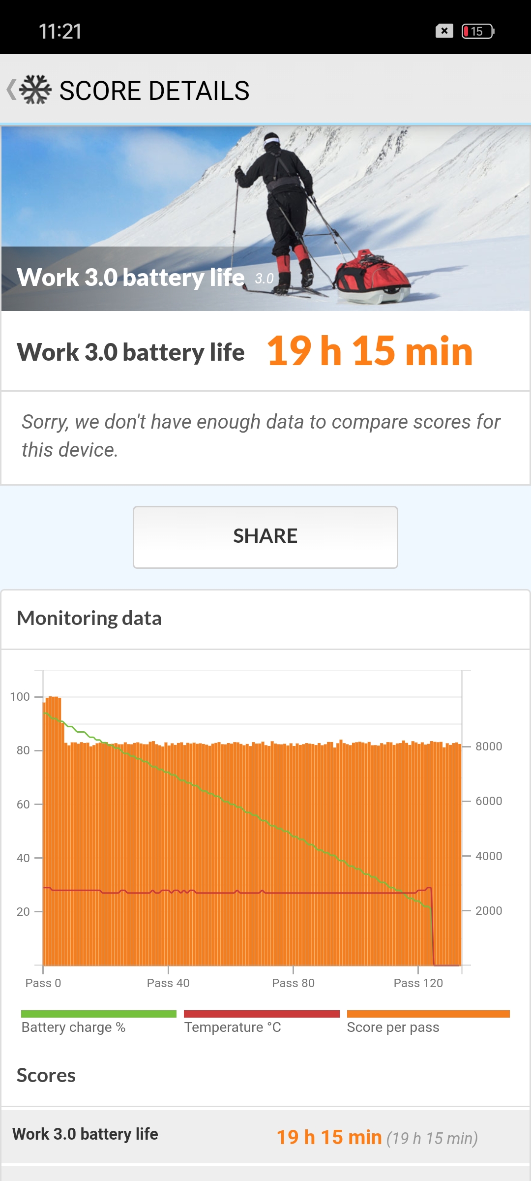 The full charge can last up to an astounding 19 hours and 15 minutes, according to the PCMark battery test. With real-life usage, the handset should provide at least 5-6 hours of screen-on time. In our 4K YouTube video playback test, with 50 percent brightness and volume, the phone experienced a 5 percent drop in battery life, which is acceptable for a budget smartphone.