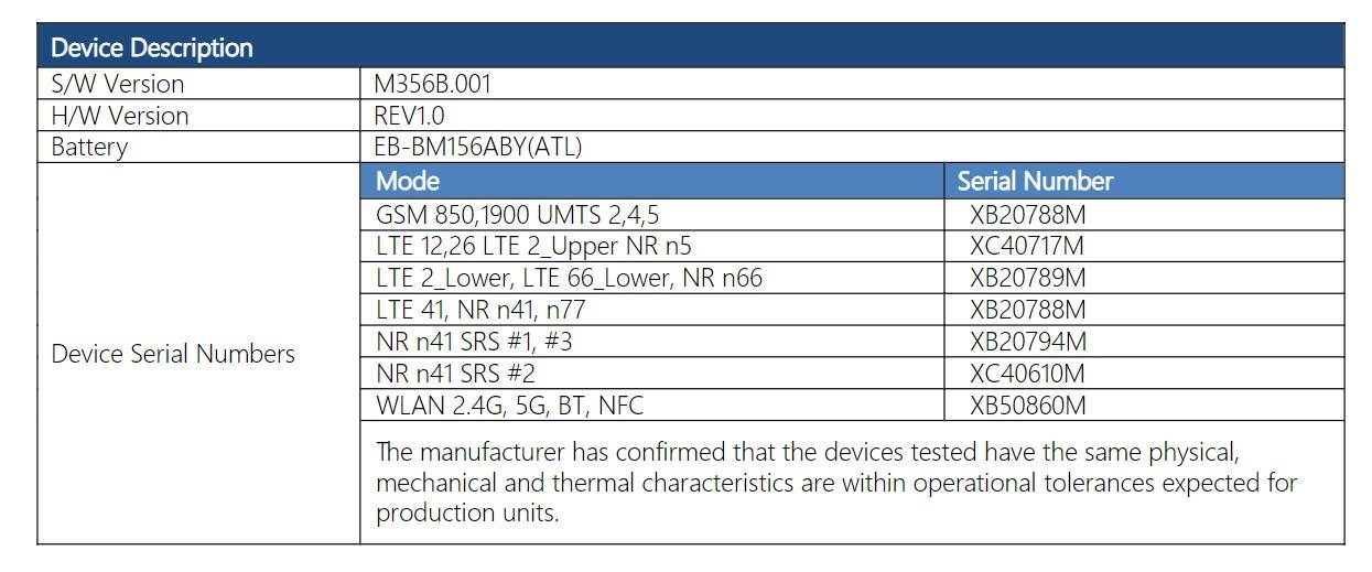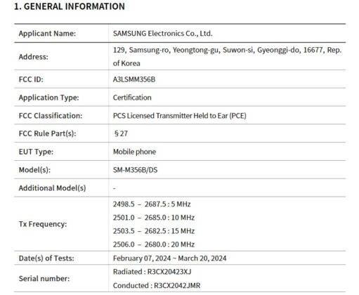 As mentioned above, the Galaxy M35 5G was also spotted on the US FCC certification site. The FCC listing also shows the same SM-M356B model number confirming it is the Galaxy M35. The smartphone’s connectivity details including NFC, LTE and 5G are confirmed through the listing along with its charging adapter model number, EP-TA800. This model number is associated with Samsung’s 25W charger suggesting the Galaxy M35 5G will come with 25W fast charging.