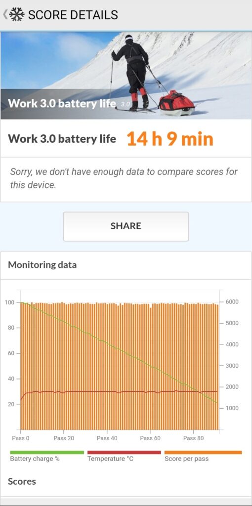 The Tecno Spark 20C scored 14 hours and 9 minutes on the PC Mark battery test, which is within the acceptable range for the price. The bundled 18W charger takes about 2 hours and 20 minutes to recharge the device completely from 0 to 100 percent, which is standard for the price segment.