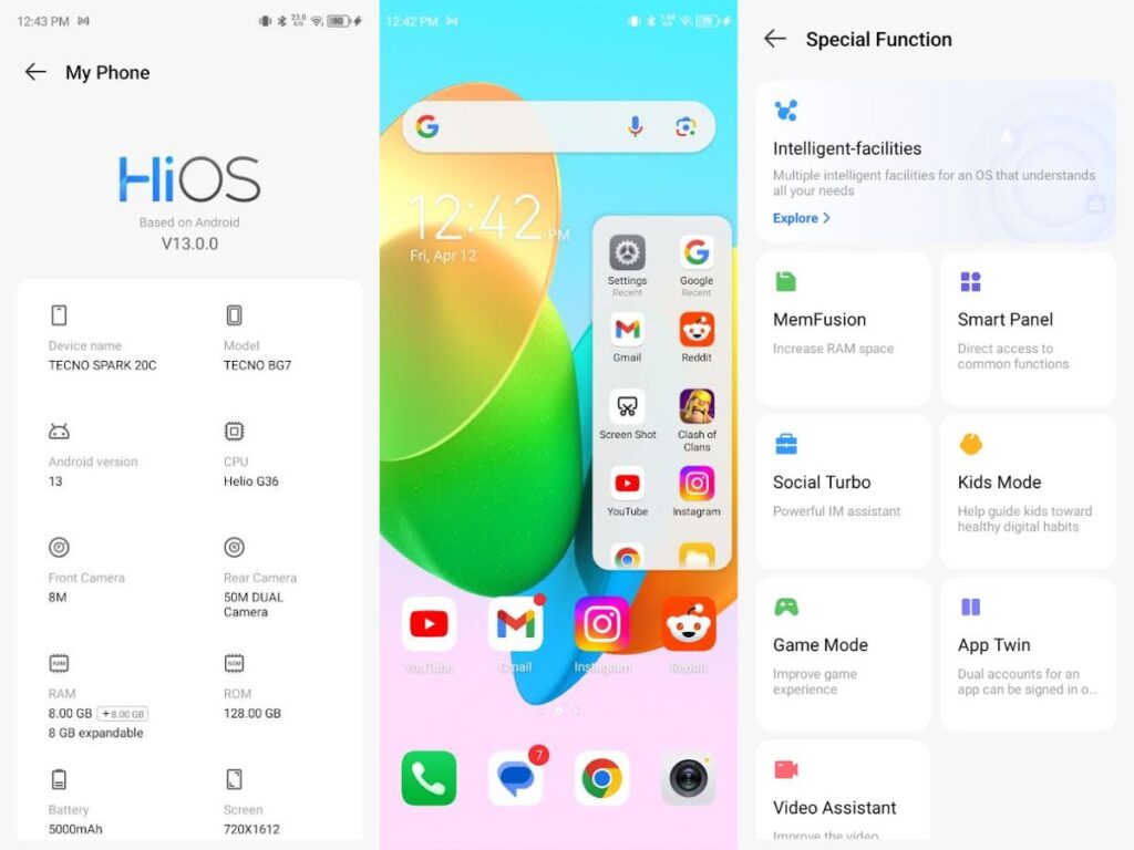 On the software side of things, the device operates on HiOS, based on Android 13.0 out of the box. The OS does come with a few pre-installed apps, some of which can removed but others can only be disabled. The OS is intuitive to use and comes with features like a smart panel, Dynamic Port (what Tecno calls its Dynamic Island-like feature), game mode, and more to enhance your user experience.