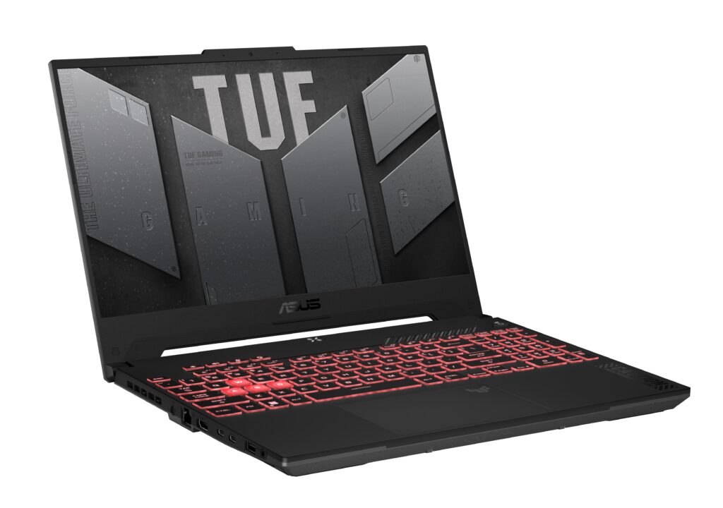 - Processor & Graphics: The TUF A15 comes with up to an AMD Ryzen 9 8945H processor paired with up to NVIDIA RTX 4070 8GB GDDR6 140W TDP GPU.
