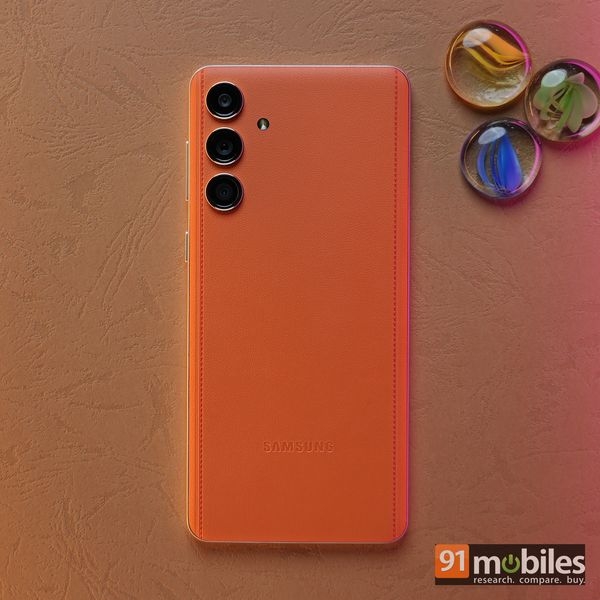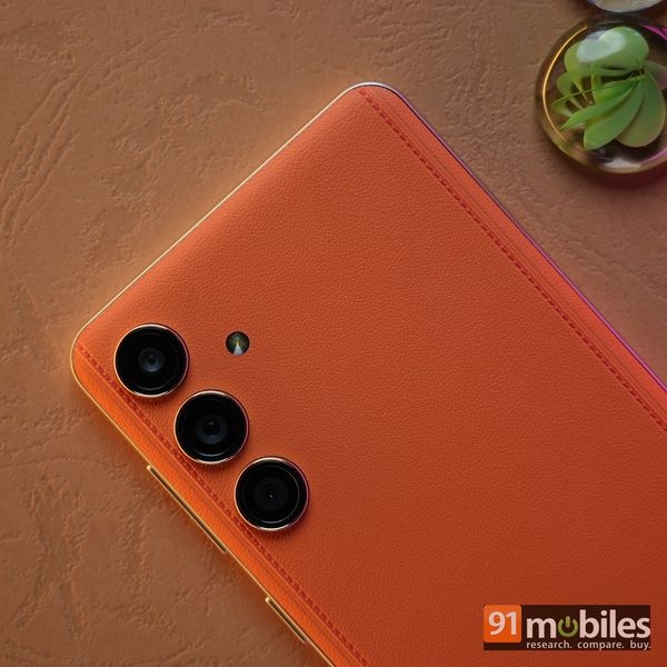 While Samsung’s vegan leather rear panel, available in two shades, black and apricot, has a unique stitch pattern, the Vivo V30e’s dual-tone Velvet Red back panel is more classic. The Vivo V30e also comes in two more finishes: Silk Blue and Sky Mirror.