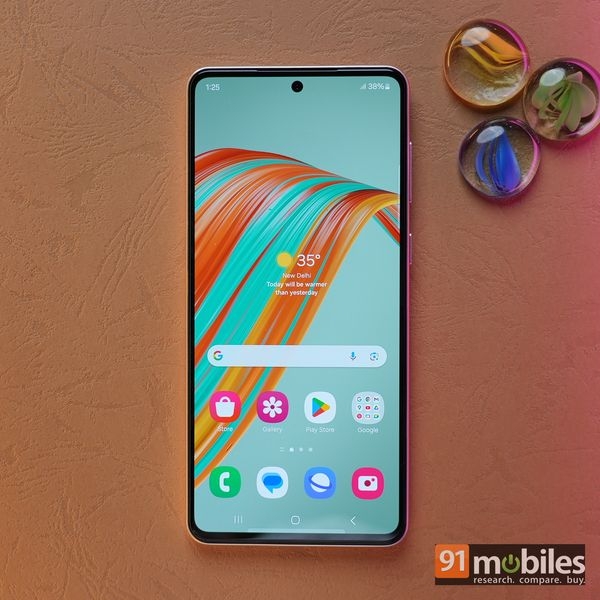 The Samsung Galaxy F55 has a 6.7-inch FHD+ Super AMOLED Plus flat display with a 120Hz adaptive refresh rate and 1,000 nits of peak brightness. The display should offer a pleasing and smooth viewing experience.