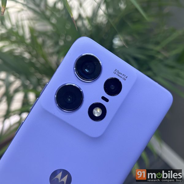 The Motorola phone offers versatility in the camera department. We get a 50MP primary camera, a 13MP ultra-wide-angle camera, and a 10MP telephoto shooter, which allows users to click zoom photos.